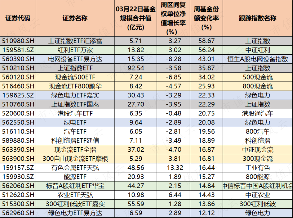同时,现金流500ETF、现金流ETF800鹏华、现金流ETF全指以及300自由现金流ETF摩根,这四只产品本周份额也增长明显。