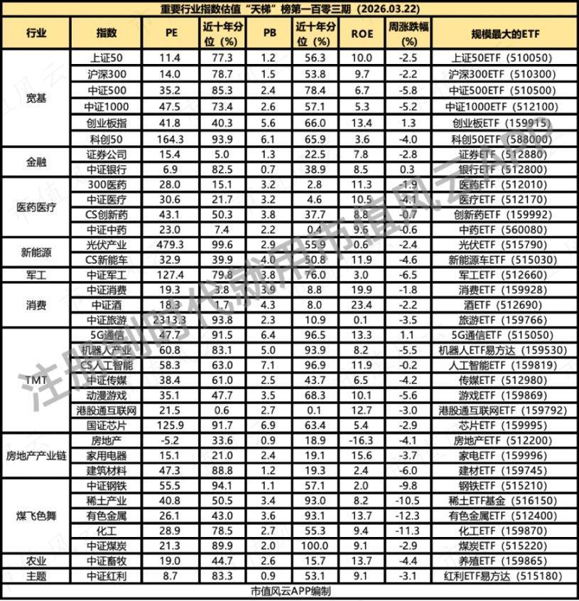 各位老铁大家好,这里是市值风云基金研究部ETF栏目,会在每周末发布ETF基金最新的市场数据和相应指数的估值数据。今天为第一百零三期。