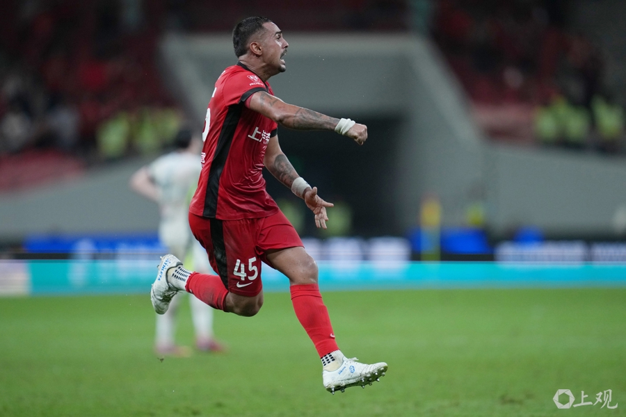 莱昂纳多庆祝进球 新民晚报记者 李铭珅 摄